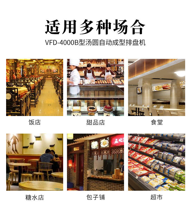 VFD-4000B汤圆机,定量准确自动搓圆排盘成型大小均匀口感柔滑。可制作各式包馅食品,如汤圆、芝麻球、豆沙包、南瓜饼、奶黄包等